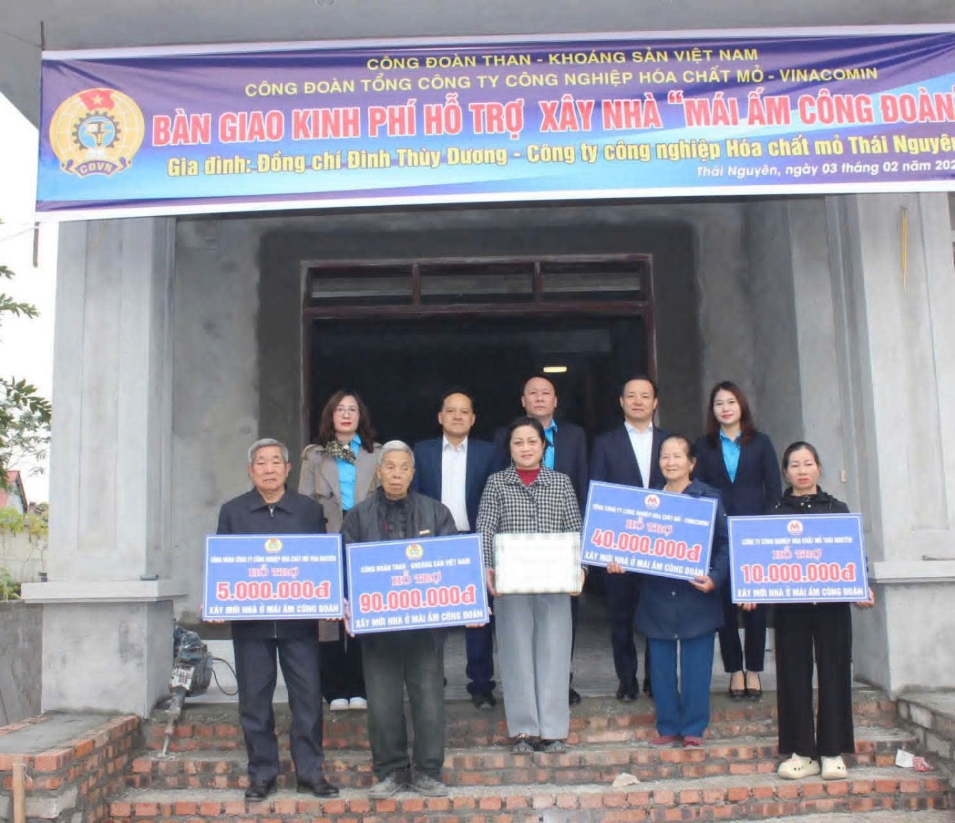 Nhân dịp này, Công đoàn TKV trao tiền quỹ "Mái ấm công đoàn'' với mức 90 triệu đồng và Tổng công ty trích quỹ phúc lợi hỗ trợ 40 triệu đồng cho mỗi gia đình. Chuyên môn của 2 đơn vị hỗ trợ gia đình 15 và 25 triệu đồng. Ngoài số tiền hỗ trợ bằng tiền mặt Công đoàn Tổng công ty và Công đoàn đơn vị cũng tặng gia đình những phần quà thiết thực với sinh hoạt của gia đình. Đây là một phần quà vô cùng ý nghĩa mang lại cho các đồng chí và gia đình ngôi nhà mới khang trang, cuộc sống ổn định hơn để yên tâm công tác, hoàn thành tốt nhiệm vụ.