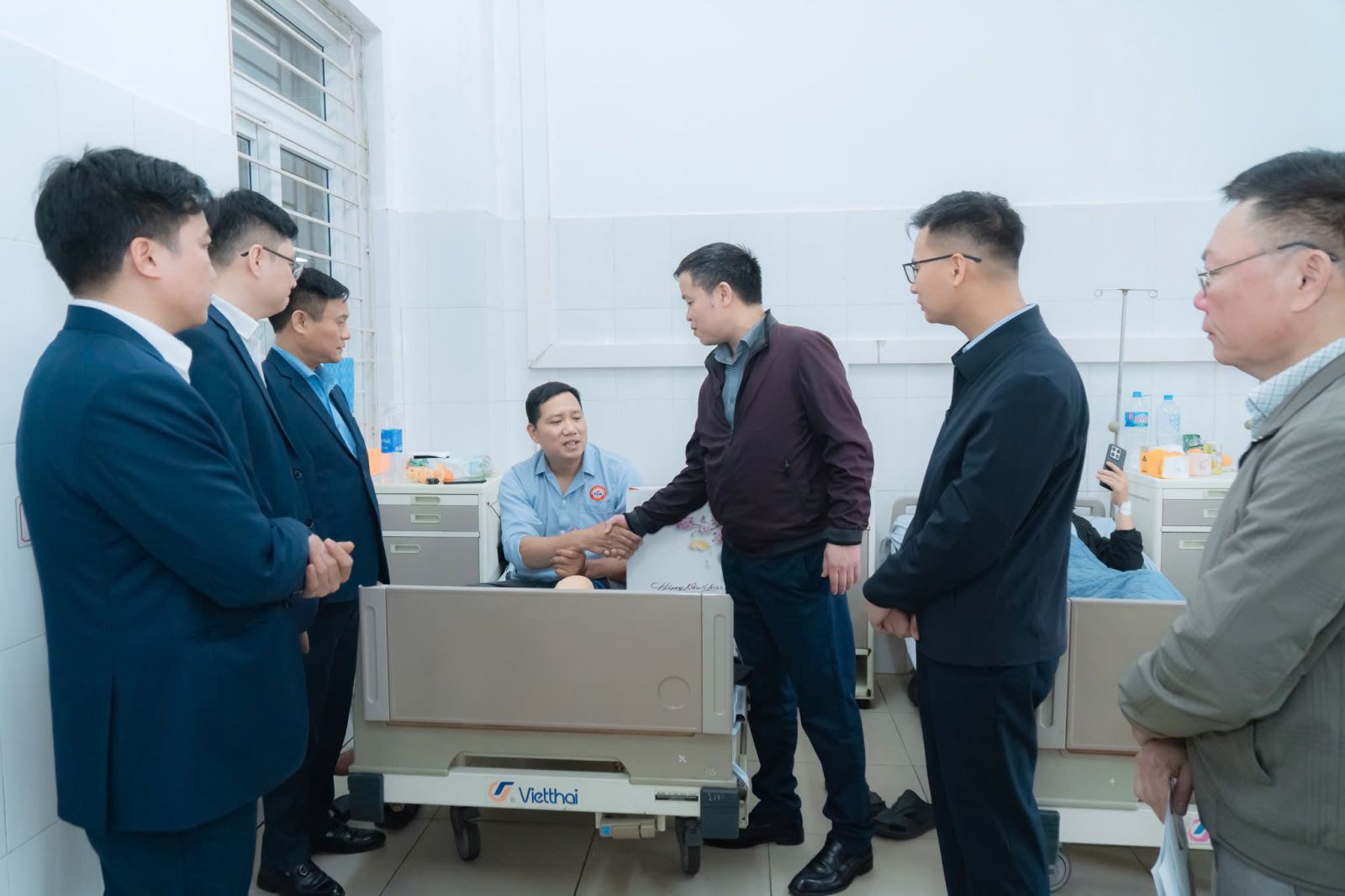 Tại đây, thay mặt Ban Lãnh đạo Công ty, đồng chí Bùi Tất Thành - Chủ tịch Công đoàn Công ty đã ân cần thăm hỏi tình hình sức khỏe, quá trình điều trị của từng công nhân, đồng thời chia sẻ, động viên người lao động yên tâm điều trị, giữ gìn tinh thần lạc quan để sớm bình phục, trở lại đơn vị công tác; gửi lời chúc mừng năm mới an khang, hạnh phúc tới các gia đình công nhân, đồng thời mong muốn các y, bác sĩ tiếp tục quan tâm, tạo điều kiện chăm sóc tốt nhất cho người bệnh.