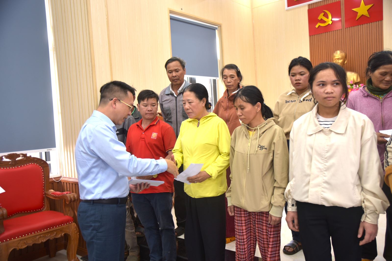 Đồng chí Đào Phương Chung - Phó Giám đốc Công ty Nhôm Đắk Nông trao quà cho các hộ dân có hoàn cảnh khó khăn
