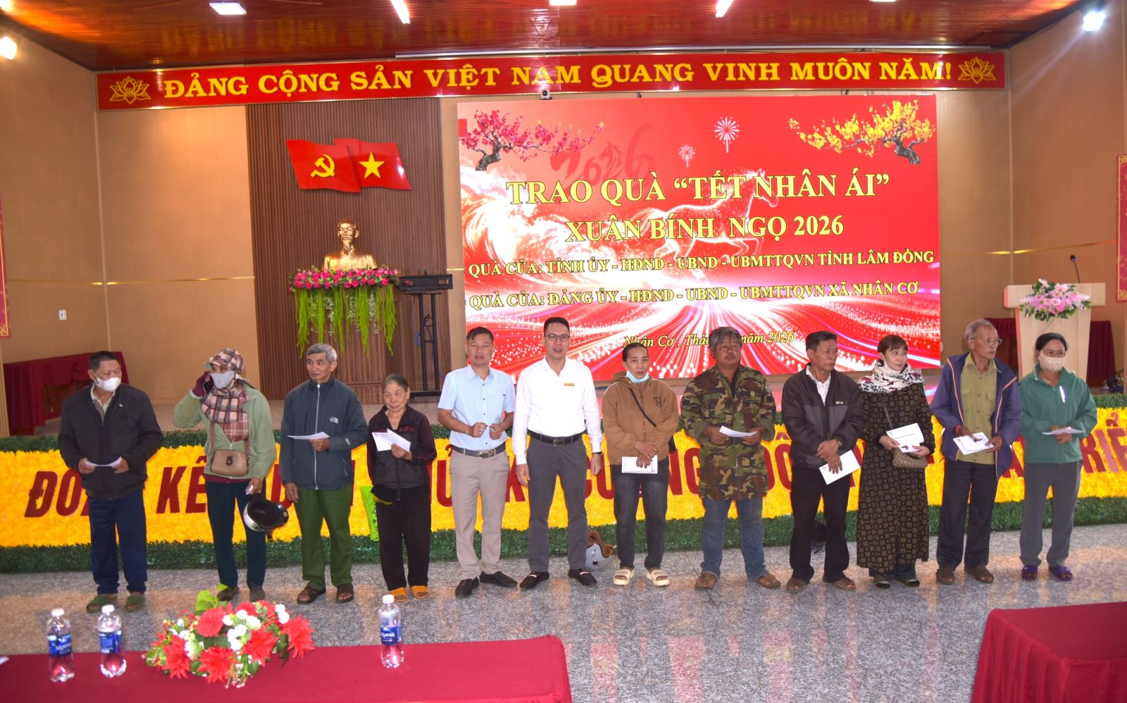 Chương trình trao quà Tết cho hộ nghèo, hộ cận nghèo, trẻ em khuyết tật, người có hoàn cảnh khó khăn trên địa bàn các xã được tổ chức tại nhiều địa điểm phân bố trải đều trên địa bàn các xã, tạo điều kiện thuận lợi để nhân dân tham gia, nhận quà đầy đủ, kịp thời và chu đáo.