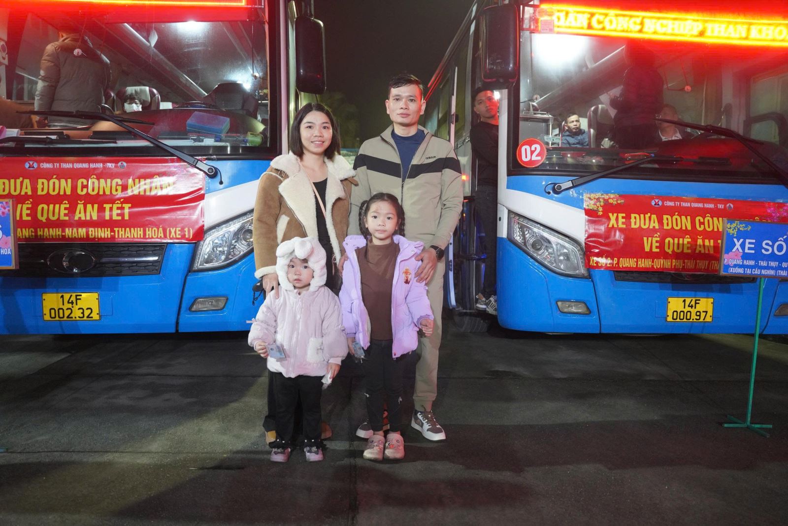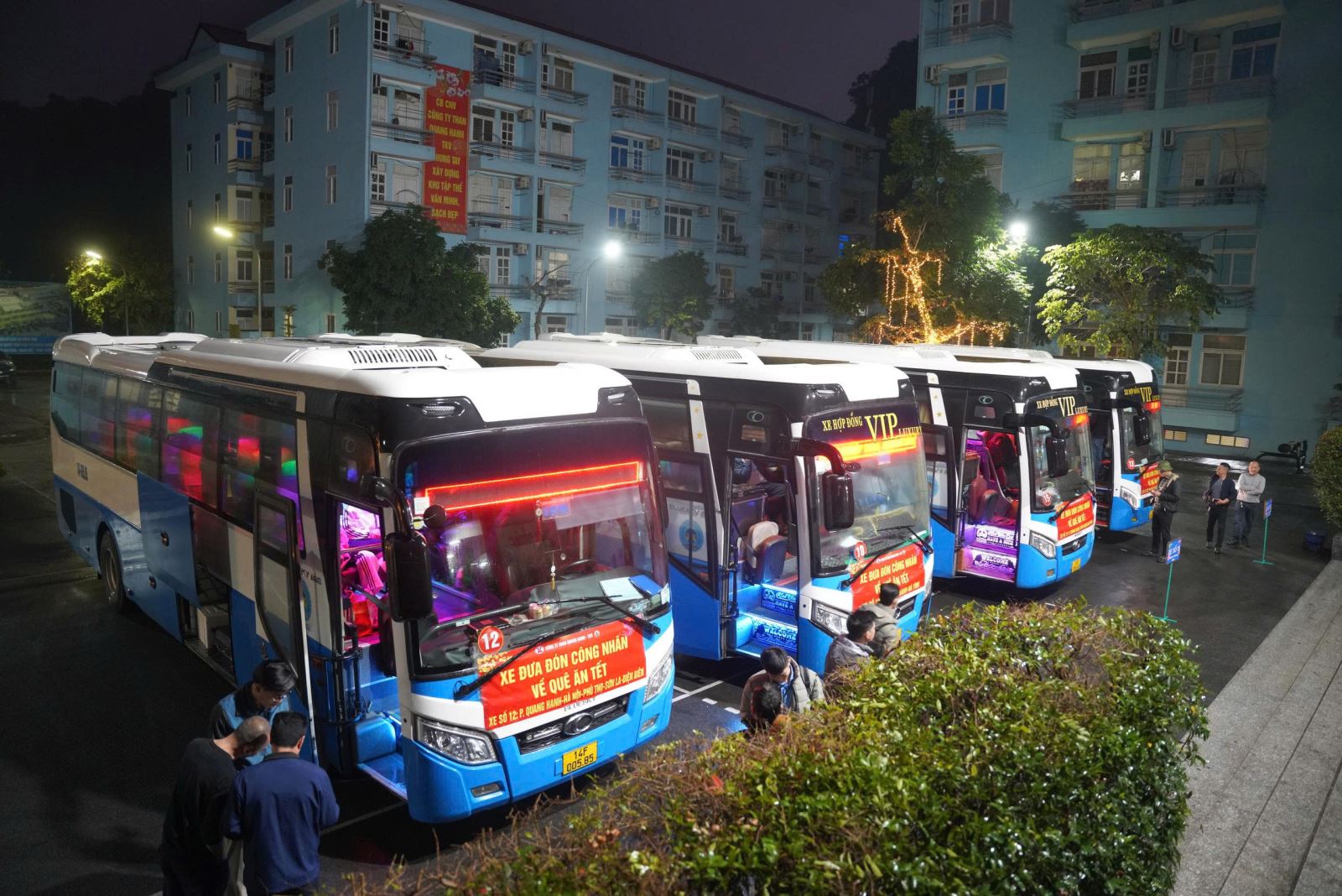 Căn cứ vào nguyện vọng của người lao động, năm nay Công ty đã huy động đội xe hùng hậu gồm 15 xe chất lượng cao, chạy trên 12 tuyến lộ trình xuyên suốt từ Bắc vào Trung. Gần 600 cán bộ công nhân viên cùng người thân đã bắt đầu hành trình hồi hương về các tỉnh thành như: Thái Bình, Hưng Yên, Ninh Bình, Phú Thọ, Lào Cai, Sơn La, Điện Biên, Thanh Hóa, Nghệ An... Việc tổ chức xe đưa đón tập trung không chỉ giúp thợ mỏ giảm bớt gánh nặng tàu xe ngày Tết mà còn đảm bảo sự an toàn tuyệt đối, giúp anh em công nhân yên tâm hưởng trọn niềm vui bên gia đình sau một năm miệt mài cống hiến.