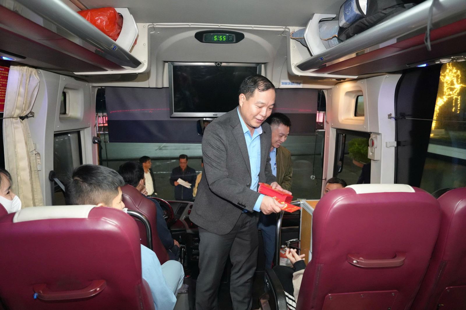 Tại buổi tiễn chân CBCNV về các địa phương sum họp cùng gia đình đón Xuân Bính Ngọ 2025,  các đồng chí lãnh đạo Công ty Than Quang Hanh gửi những lời chúc Tết tới các gia đình Thợ mỏ và có những chia sẻ đầy cảm xúc: "Mỗi mét lò xuống sâu, mỗi tấn than ra lò trong năm qua đều thấm đẫm mồ hôi và sự nỗ lực của các bạn. Công ty chính là gia đình thứ hai, và hôm nay, chúng tôi tiễn các bạn về với gia đình lớn của mình với lòng biết ơn chân thành nhất”. Bên cạnh lời chúc Tết, lãnh đạo Công ty đã trực tiếp trao tận tay những phong bao lì xì đỏ thắm, may mắn theo phong tục cổ truyền.