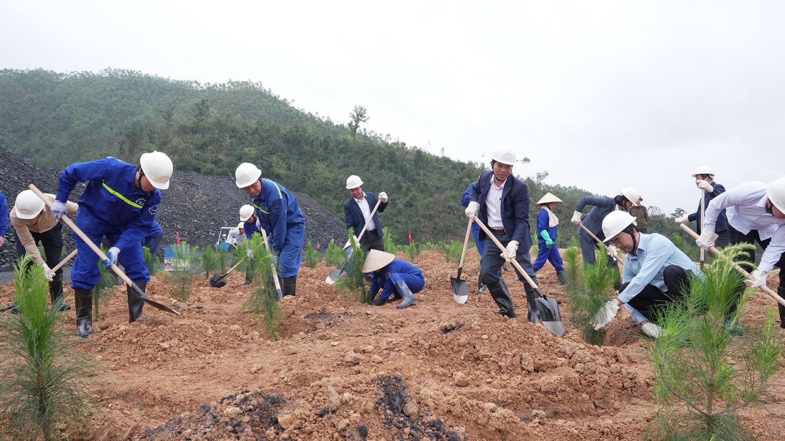 Tại buổi lễ, 888 cây thông mã vĩ (cây giống cao trên 80cm) đã được trồng trên diện tích 4.440 m², với mật độ 2.000 cây/ha. Việc lựa chọn thông mã vĩ - loài cây có khả năng thích nghi tốt với điều kiện đất bãi thải mỏ - không chỉ góp phần phủ xanh khu vực sau khai thác mà còn tạo cảnh quan sinh thái lâu dài, hạn chế xói mòn và cải thiện môi trường.