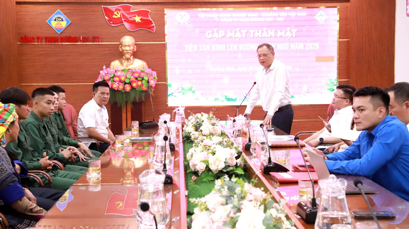 Ngày 02/3/2026, Công ty Than Dương Huy tổ chức buổi gặp mặt thân mật tiễn 04 tân binh lên đường nhập ngũ, thực hiện nghĩa vụ thiêng liêng của tuổi trẻ, sẵn sàng góp sức bảo vệ Tổ quốc. Không ồn ào hình thức, chương trình diễn ra trong không khí trang trọng mà gần gũi, như một lời dặn dò ấm áp từ đơn vị và gia đình gửi tới những người con ưu tú trước giờ phút lên đường.