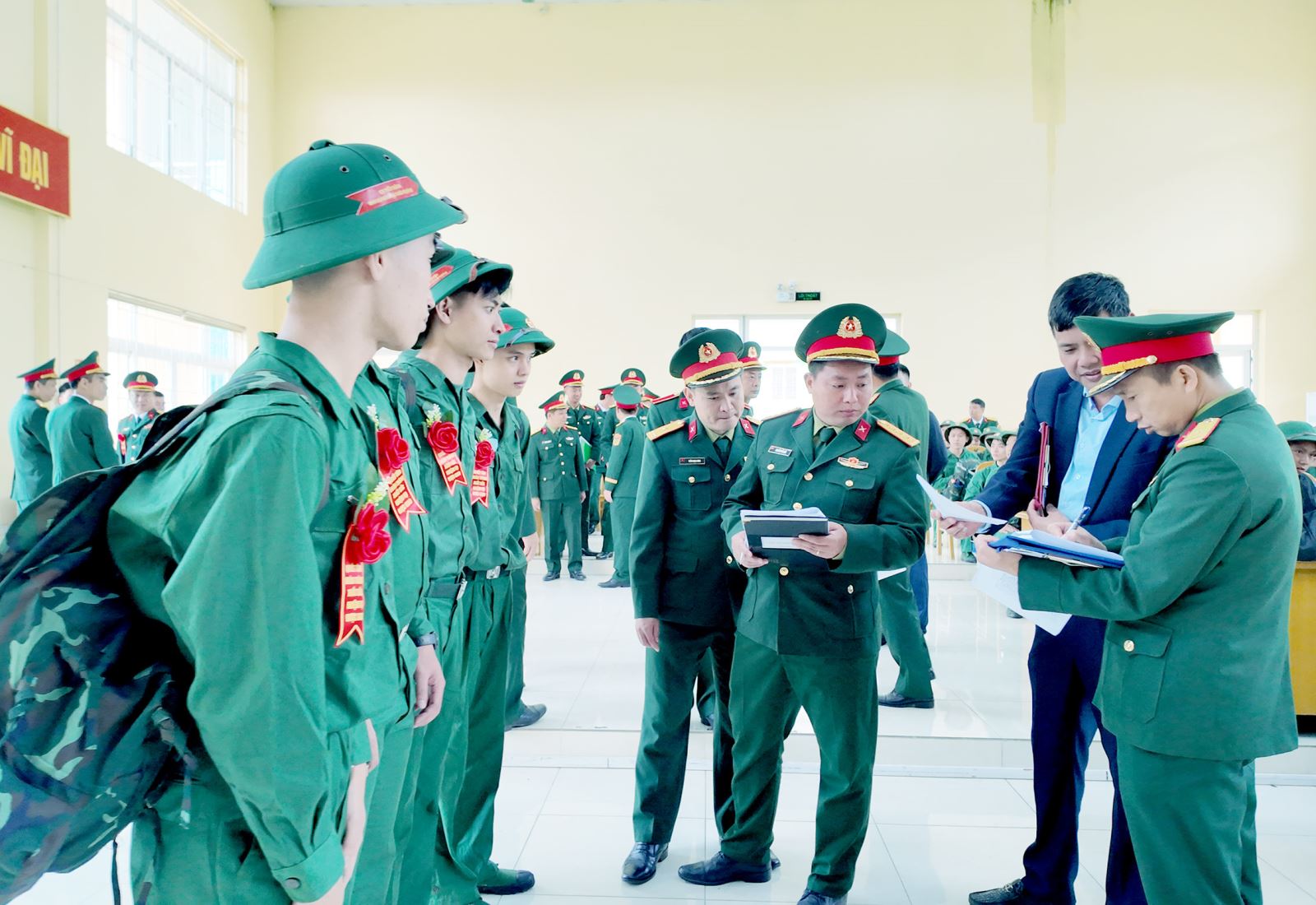 Năm 2026, công tác tuyển chọn và gọi công dân nhập ngũ được triển khai đồng bộ, chặt chẽ, đúng quy định. Tại điểm giao nhận quân số 09 đã tuyển chọn và bàn giao 290 thanh niên nhập ngũ vào các đơn vị Quân đội nhân dân và Công an nhân dân, bảo đảm chất lượng, đạt 100% chỉ tiêu giao. Trong đó có 65 thanh niên viết đơn tình nguyện nhập ngũ; 89 thanh niên ưu tú đã được bồi dưỡng nhận thức về Đảng.