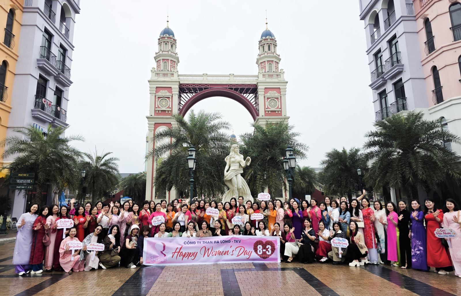 Nữ CBCNV Công ty Than Hạ Long chụp ảnh lưu niệm tại Vinhomes Ocean Park (Hưng Yên) trong chương trình trải nghiệm nhân dịp 8/3