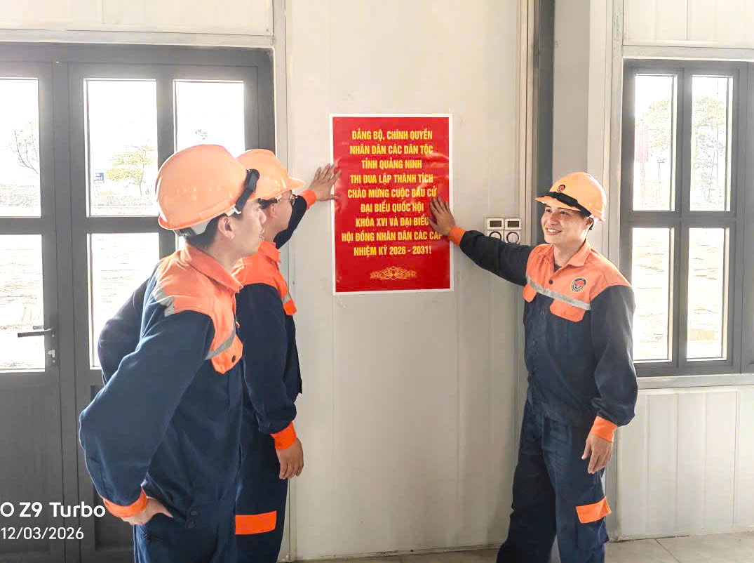 Trong những ngày này, cùng với khí thế thi đua lao động sản xuất, phấn đấu hoàn thành kế hoạch của CNLĐ các đơn vị thuộc TKV trên khắp các công trường, phân xưởng…, công tác chuẩn bị và tuyên truyền về Cuộc bầu cử đại biểu Quốc hội khoá XVI và bầu cử đại biểu HĐND các cấp nhiệm kỳ 2026 - 2031 cũng được các đơn vị khẩn trương thực hiện, tất cả đều hướng về Ngày hội non sông của Đất nước.