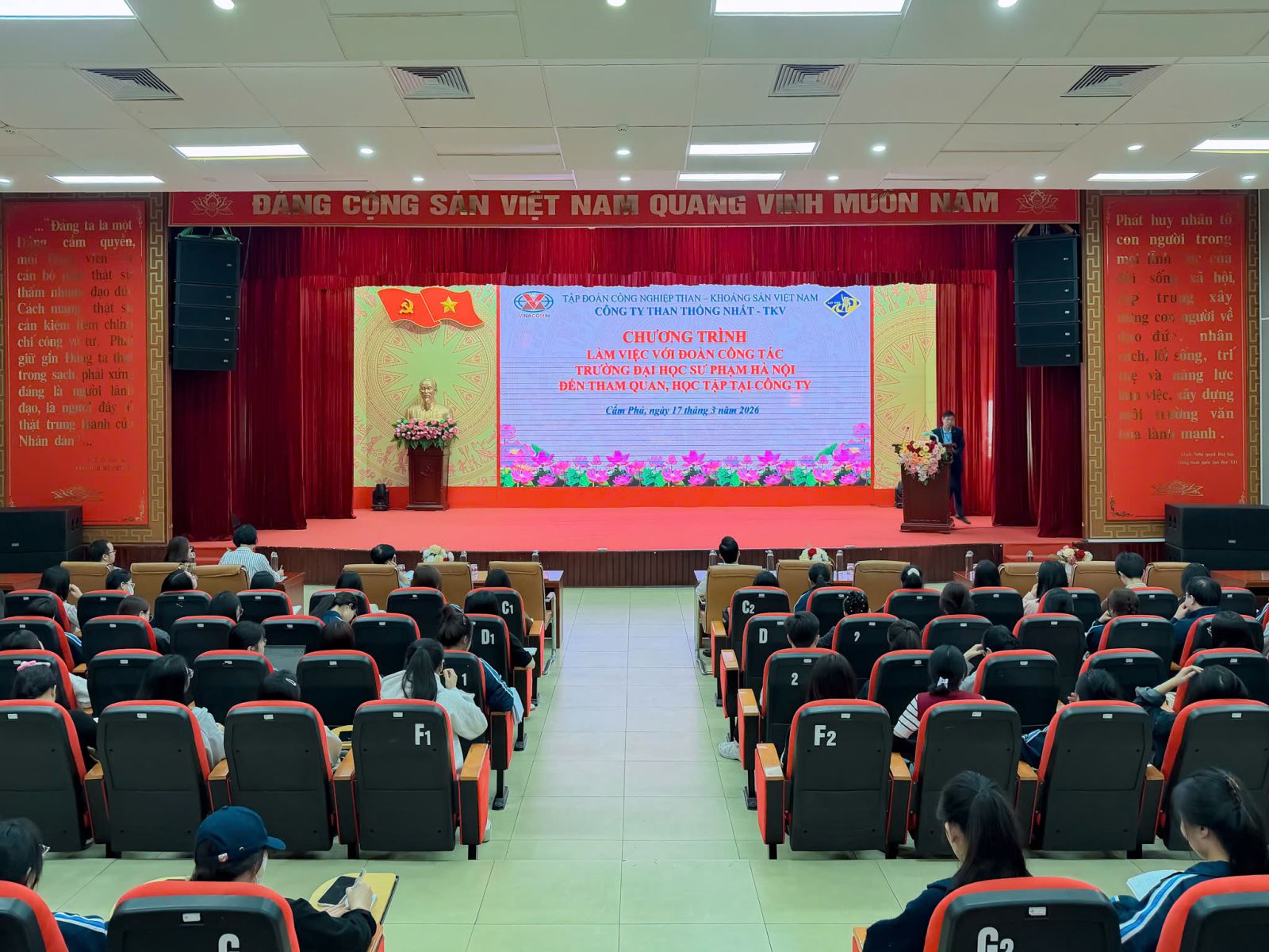 Tại buổi làm việc, các em sinh viên đã được theo dõi video về quá trình hình thành, phát triển của Công ty Than Thống Nhất qua 65 năm xây dựng và phát triển. Thay mặt Công ty, đồng chí Lê Văn Trung - Phó Trưởng phòng TCLĐ đã giới thiệu tổng quan về lịch sử hình thành và phát triển của Công ty, quy mô sản xuất, công nghệ khai thác than hầm lò, cùng các giải pháp đảm bảo an toàn lao động và bảo vệ môi trường trong quá trình khai thác; trực tiếp trao đổi, giải đáp nhiều câu hỏi của sinh viên liên quan đến điều kiện địa chất, đặc điểm phân bố tài nguyên than, cũng như những thách thức trong khai thác bền vững... Những thông tin này giúp sinh viên hiểu rõ hơn về vai trò của ngành Than đối với sự phát triển kinh tế - xã hội của khu vực và cả nước.