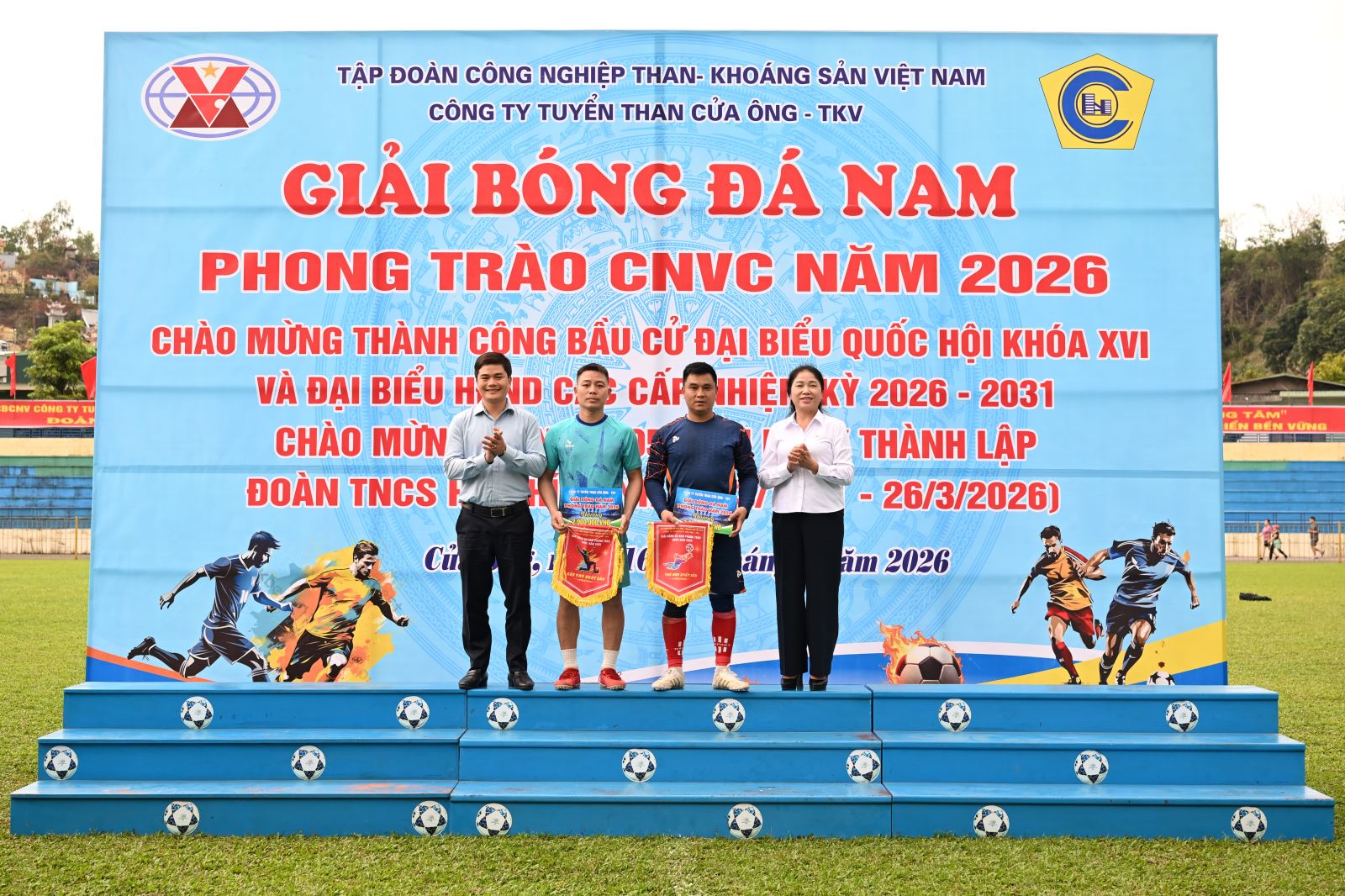 Từ ngày 16 đến 18/3/2026, tại Sân vận động Cửa Ông, Công ty Tuyển than Cửa Ông tổ chức thành công Giải bóng đá nam phong trào năm 2026. Đây là hoạt động thiết thực chào mừng thành công cuộc bầu cử Đại biểu Quốc hội khóa XVI và HĐND các cấp nhiệm kỳ 2026-2031; hướng tới kỷ niệm 95 năm Ngày thành lập Đoàn TNCS Hồ Chí Minh (26/3/1931 - 26/3/2026), đồng thời tạo khí thế thi đua sôi nổi trong cán bộ, công nhân viên toàn Công ty.