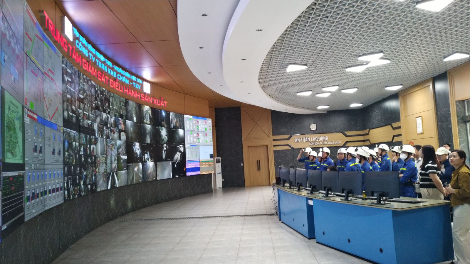 Cũng trong chương trình đoàn đã tham quan toàn bộ khai trường sản xuất của Công ty (Nhà giao ca nhật lệnh, Trung tâm giám sát điều hành sản xuất…), được hướng dẫn xuống lò tham quan. Tại đây, đoàn đã được giới thiệu về quy trình làm việc khép kín của thợ mỏ từ khi xuống lò đến khi kết thúc ca sản xuất, đoàn công tác đã trải nghiệm ăn tự chọn tại Bếp ăn Khe Chàm III.