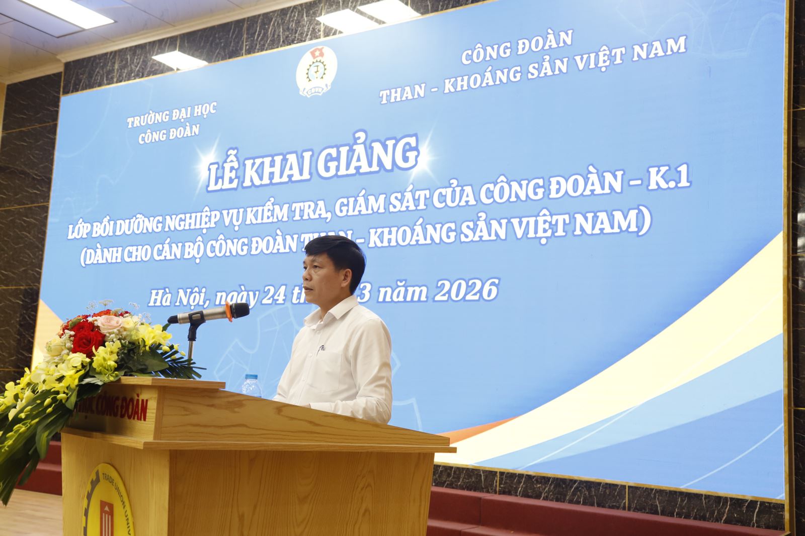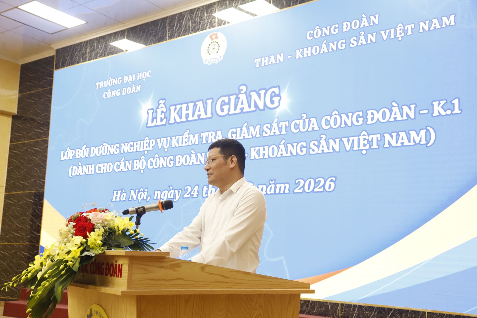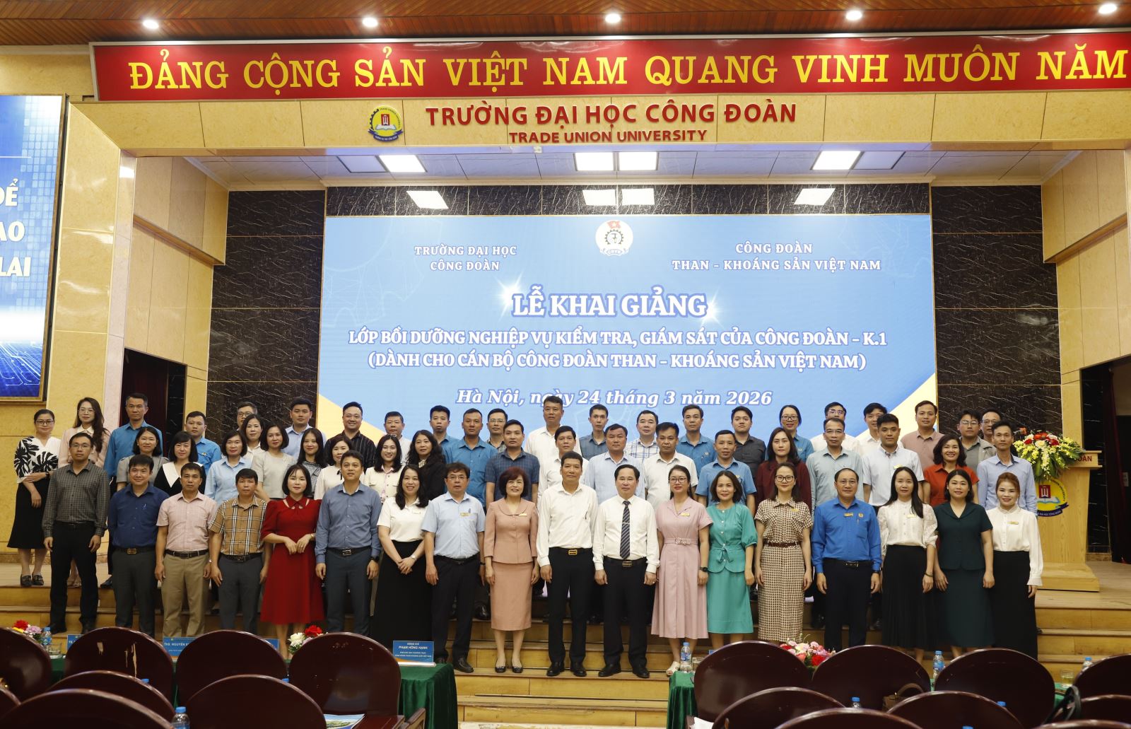 Sáng ngày 24/3, tại Hà Nội, Công đoàn Than - Khoáng sản Việt Nam (Công đoàn TKV) phối hợp với Trường Đại học Công đoàn tổ chức khai giảng lớp đào tạo, bồi dưỡng nghiệp vụ kiểm tra, giám sát cho cán bộ công đoàn các đơn vị trực thuộc Công đoàn TKV.