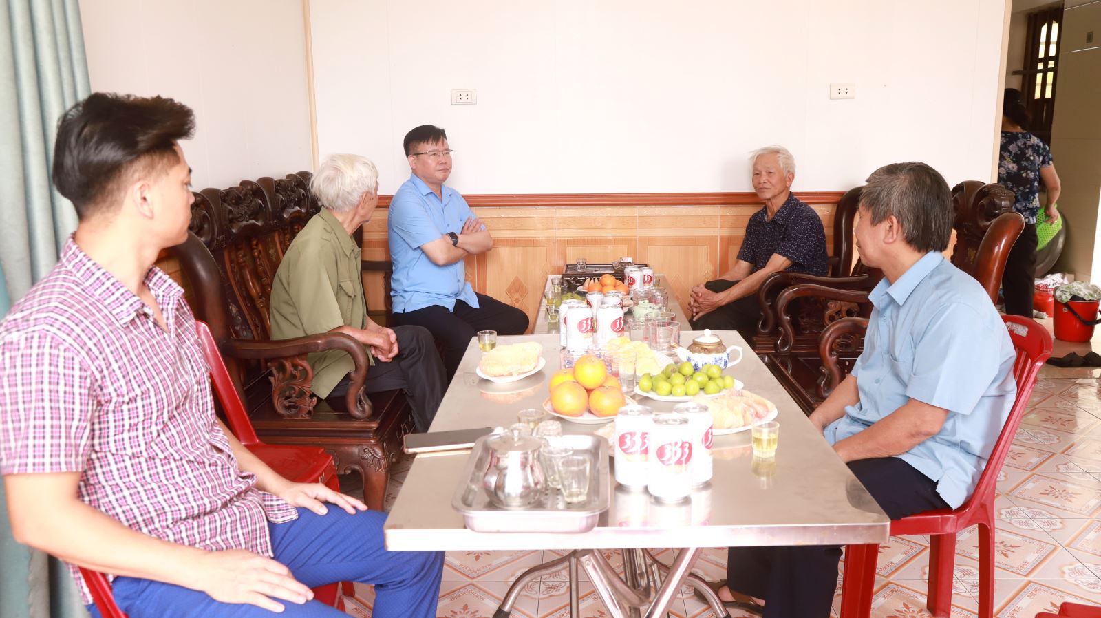 Đồng chí Đào Trung Huy - Chủ tịch Công đoàn Công ty thăm hỏi tại gia đình anh Bùi Ngọc Ánh