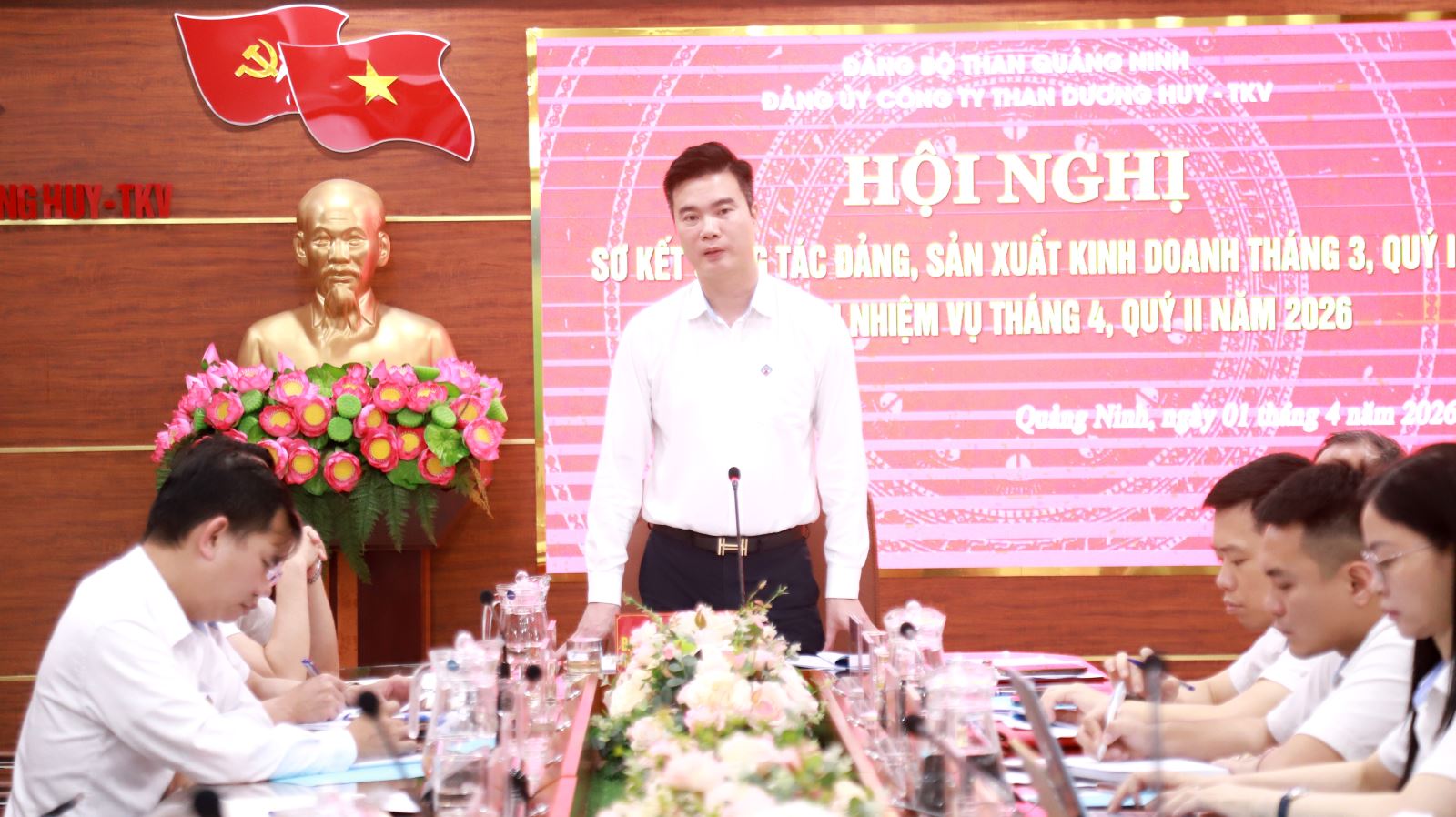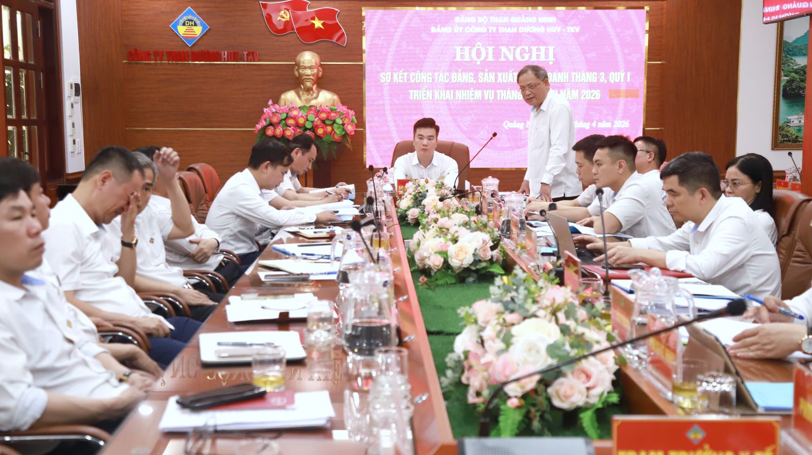 Ngày 01/4/2026, Công ty Than Dương Huy tổ chức Hội nghị Sơ kết công tác Đảng và SXKD quý I, triển khai nhiệm vụ quý II/2026. Đồng chí Cao Việt Phương - Bí thư Đảng ủy, Giám đốc Công ty chủ trì hội nghị.
