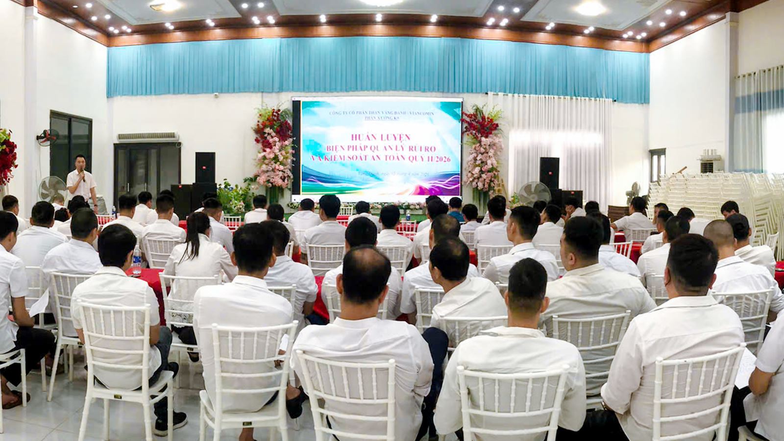 Theo thông báo của công ty, ngày 05/4/2026, toàn bộ các đơn vị sản xuất đồng loạt tổ chức huấn luyện biện pháp quản lý rủi ro và kiểm soát an toàn lao động với quy mô trên 5.000 cán bộ, công nhân viên tham gia. Lực lượng trải rộng từ cán bộ quản lý, tổ trưởng sản xuất đến công nhân trực tiếp tại các khâu khai thác, đào lò, vận tải hầm lò và phục vụ sản xuất.