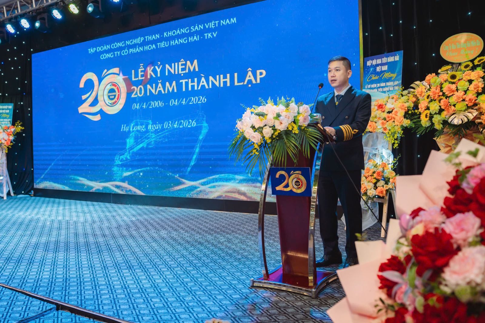 Phát biểu tại Lễ kỷ niệm, Bí thư Đảng ủy, Giám đốc Công ty Phạm Tuấn Phong ôn lại truyền thống 20 năm xây dựng và phát triển. Công ty cổ phần Hoa tiêu hàng hải được thành lập với nhiệm vụ chính là cung cấp cấp dịch vụ hoa tiêu hàng hải cho các tàu biển nước ngoài và Việt Nam ra, vào vùng cảng Cẩm Phả, giải quyết kịp thời, nhanh chóng, an toàn và hiệu quả đáp ứng cho quá trình sản xuất, công tác xuất, nhập khẩu than của Tập đoàn TKV.