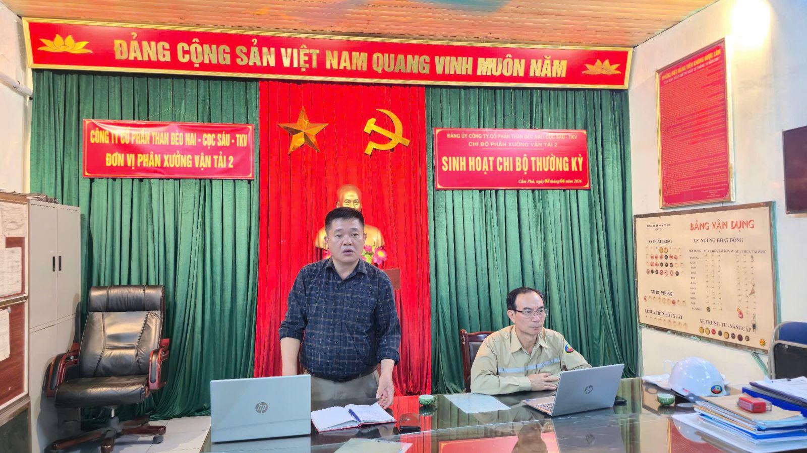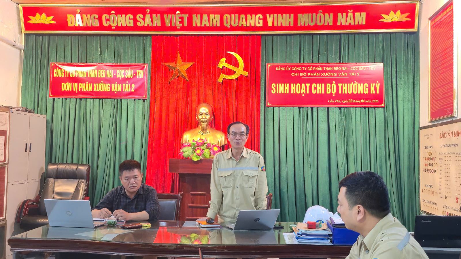 Chiều ngày 03/4/2026, tại văn phòng đơn vị, Chi bộ Phân xưởng Vận tải 2 – Công ty CP than Đèo Nai - Cọc Sáu đã tổ chức sinh hoạt chi bộ định kỳ tháng 4/2026 trong không khí nghiêm túc, dân chủ và trách nhiệm cao. Tham dự và chỉ đạo có đồng chí Nguyễn Đăng Hưng - UVBTV Đảng ủy, Chủ tịch Công đoàn Công ty, cùng toàn thể đảng viên trong Chi bộ.