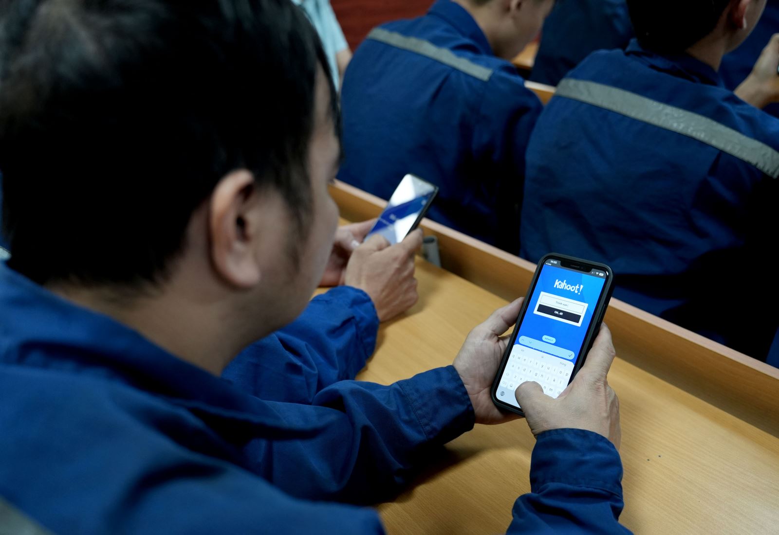 Với chiếc điện thoại thông minh trên tay, CNCB các đơn vị truy cập phần mềm Kahoot để bước vào đấu trường tri thức