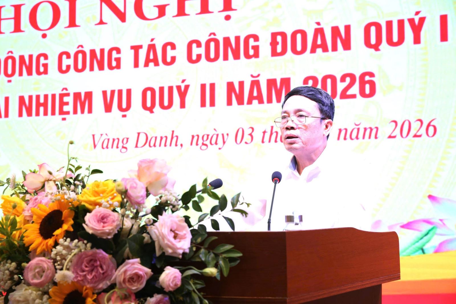 Đồng chí Bùi Văn Vinh - Chủ tịch Công đoàn Công ty báo cáo kết quả công tác Công đoàn quý I, nhiệm vụ trọng tâm quý II/2026