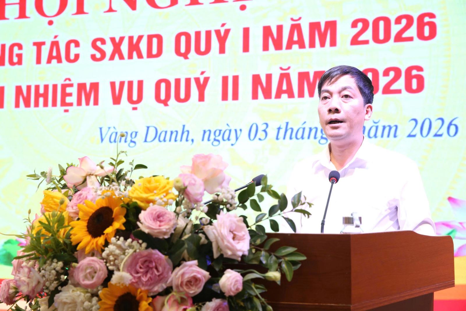 Đồng chí Đỗ Ánh - Phó Giám đốc Công ty, báo cáo hoạt động sản xuất kinh doanh quý I, nhiệm vụ quý II/2026