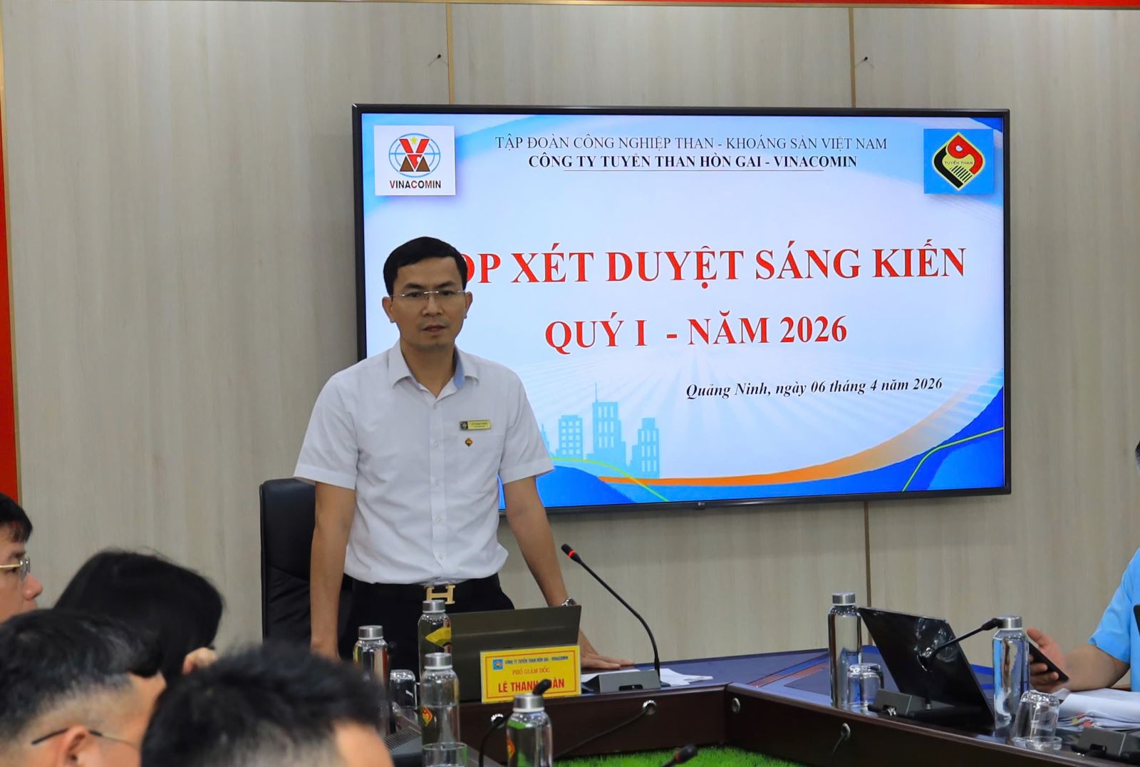 Vừa qua, Hội đồng xét duyệt sáng kiến Công ty Tuyển than Hòn Gai tổ chức họp xét duyệt sáng kiến, cải tiến kỹ thuật quý I năm 2026. Tham dự cuộc họp có các đồng chí trong Hội đồng sáng kiến Công ty và đại diện các phòng, đơn vị có sáng kiến. Đồng chí Lê Thanh Hoàn - Chủ tịch Hội đồng, Phó giám đốc Công ty chủ trì cuộc họp.