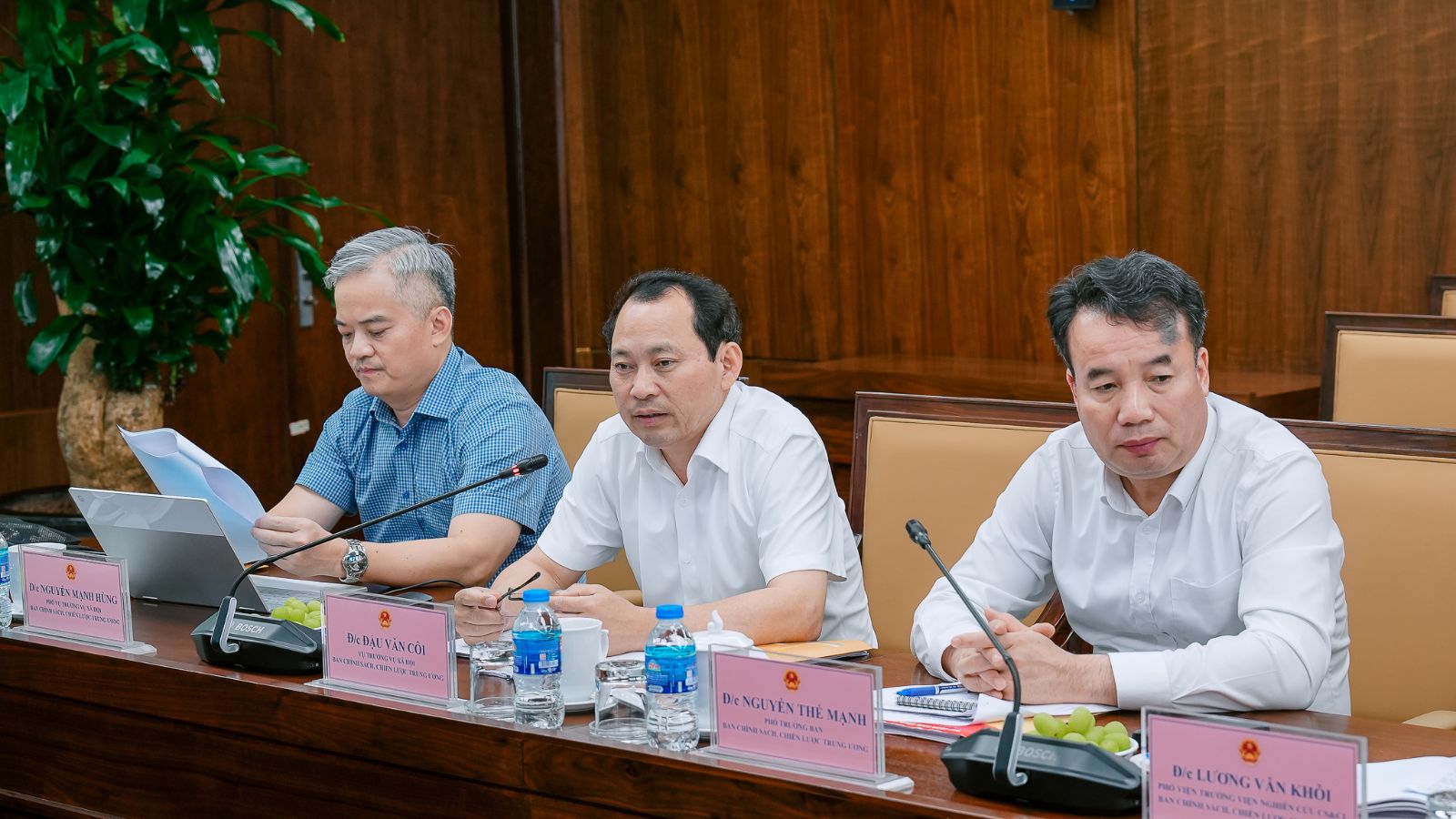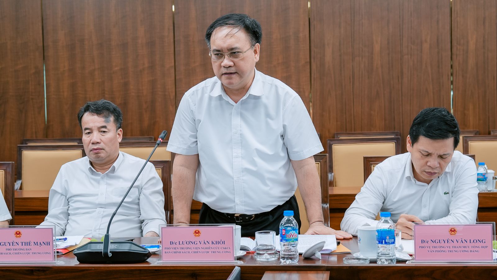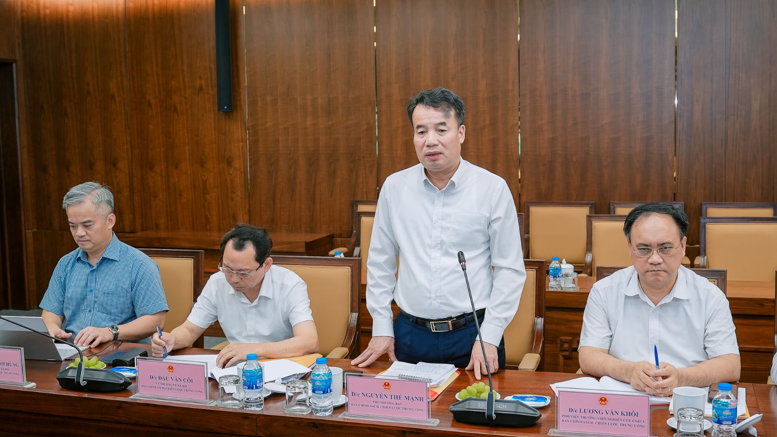 Đồng chí Nguyễn Thế Mạnh - Phó Trưởng Ban Chính sách, Chiến lược Trung ương phát biểu tại buổi làm việc