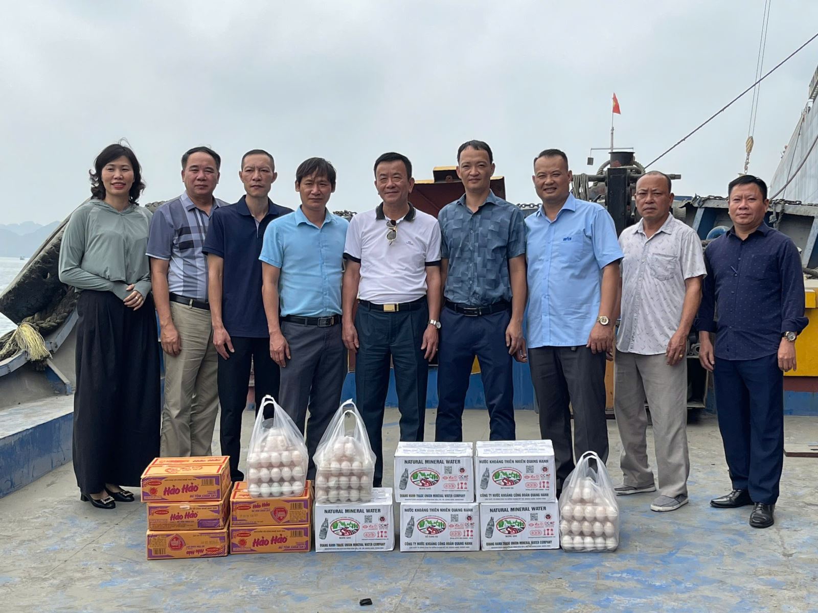 Chia sẻ với anh em thuyền viên, Công đoàn Công ty đã trực tiếp trao tặng các loại nước giải nhiệt giúp người lao động bù nước, đảm bảo sức khỏe dưới cái nắng gay gắt của biển khơi, hỗ trợ thực phẩm bổ sung nguồn dinh dưỡng, nâng cao chất lượng bữa ăn công nghiệp hàng ngày.
