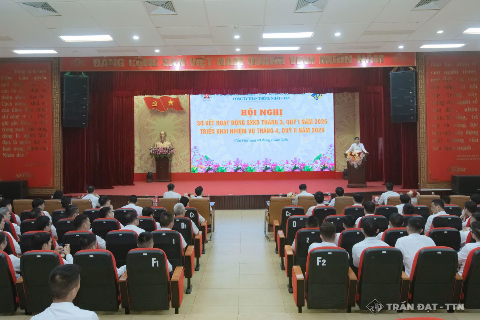 Phát biểu chỉ đạo tại hội nghị, đồng chí Vương Minh Thu - Bí thư Đảng ủy, Giám đốc Công ty đã ghi nhận, biểu dương những nỗ lực của tập thể CNCB, người lao động toàn Công ty đã đạt được trong quý I năm 2026. Để triển khai thực hiện nhiệm vụ sản xuất kinh doanh trong tháng 4, quý II năm 2026, phấn đấu hoàn thành trên 50% kế hoạch năm 2026. Đồng chí Vương Minh Thu yêu cầu các đơn vị tiếp tục tập trung thực hiện tốt các giải pháp về an toàn, kỹ thuật cơ bản, vệ sinh công nghiệp, không ngừng cải thiện điều kiện, môi trường làm việc cho NLĐ; Đẩy mạnh công tác tuyển sinh, tuyển dụng lao động với các giải pháp thu hút và giữ chân thợ lò; Công tác bảo dưỡng, vận hành thiết bị phải được kiểm tra thường xuyên, liên tục, đặc biệt là phương án phòng chống mưa bão; Tiếp tục phát huy truyền thống “Kỷ luật và đồng tâm” của người thợ mỏ trên tinh thần “Trung thành - Đoàn kết - Phát triển”, thực hiện tốt nội quy cơ quan, xây dựng văn hoá doanh nghiệp trong “Gia đình thợ mỏ Thống Nhất” ngày càng chuyên nghiệp theo hướng hiện đại, văn minh, lịch sự… Qua đó, góp phần cùng Công ty hoàn thành xuất sắc các chỉ tiêu sản xuất kinh doanh được Tập đoàn giao cho.