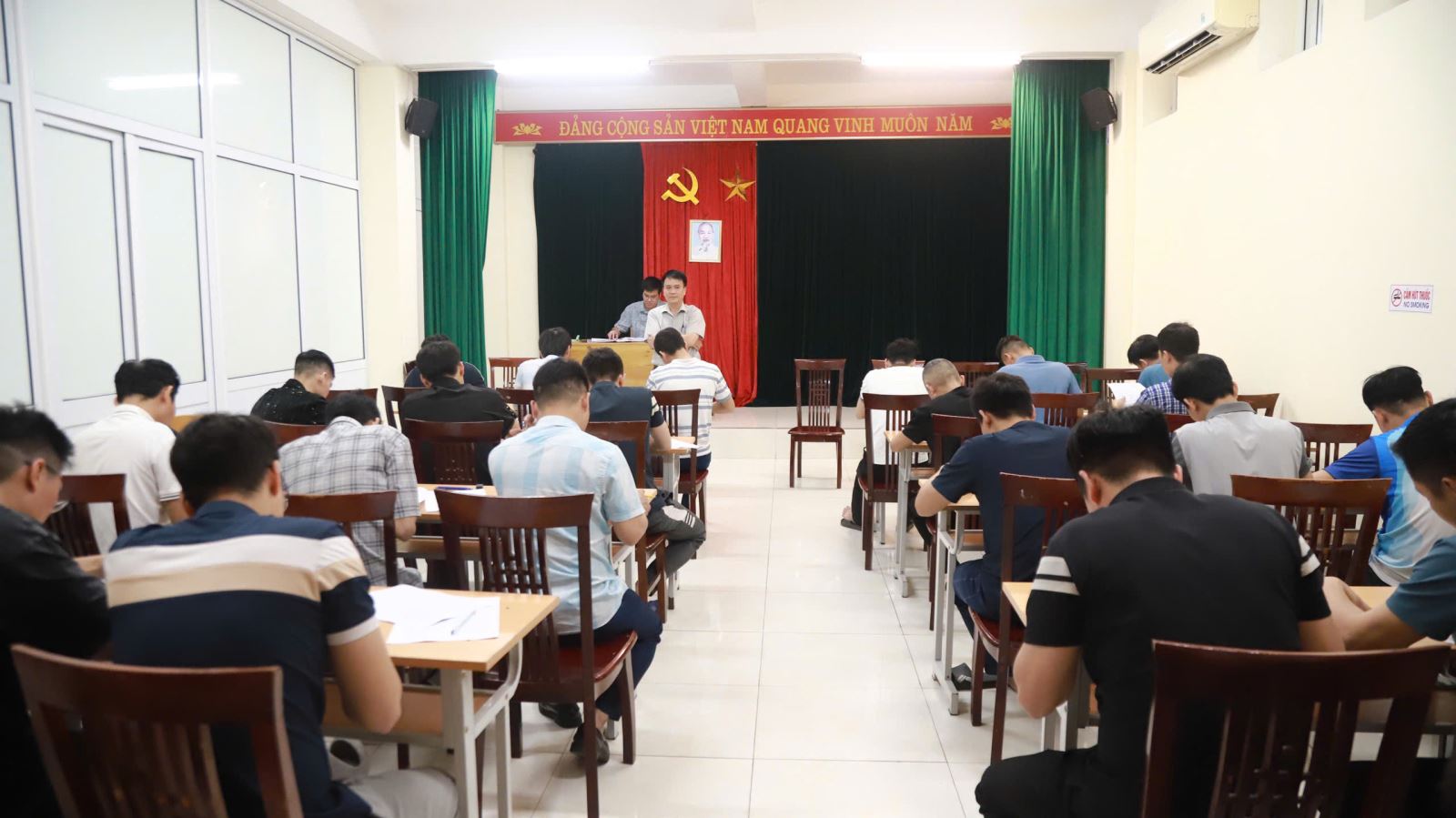 Sau thời gian ôn luyện từ ngày 23/3/2026 đến nay, các thí sinh đã thực hiện bài thi lý thuyết với nội dung xoay quanh các kiến thức chuyên môn, quy trình kỹ thuật cơ bản, an toàn lao động, cũng như các tình huống thực tế trong sản xuất hầm lò. Với tinh thần nghiêm túc, tập trung, nhiều thí sinh đã thể hiện sự hiểu biết vững vàng, khả năng vận dụng linh hoạt giữa lý thuyết và thực tiễn sản xuất.