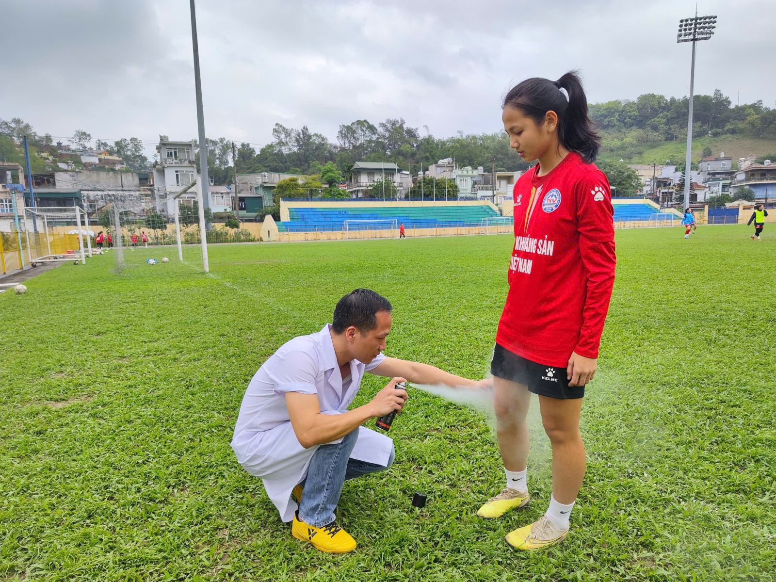 Bác sỹ kịp thời sơ cứu, xử lý chấn thương cho cầu thủ ngay trên sân, góp phần bảo đảm an toàn trong thi đấu