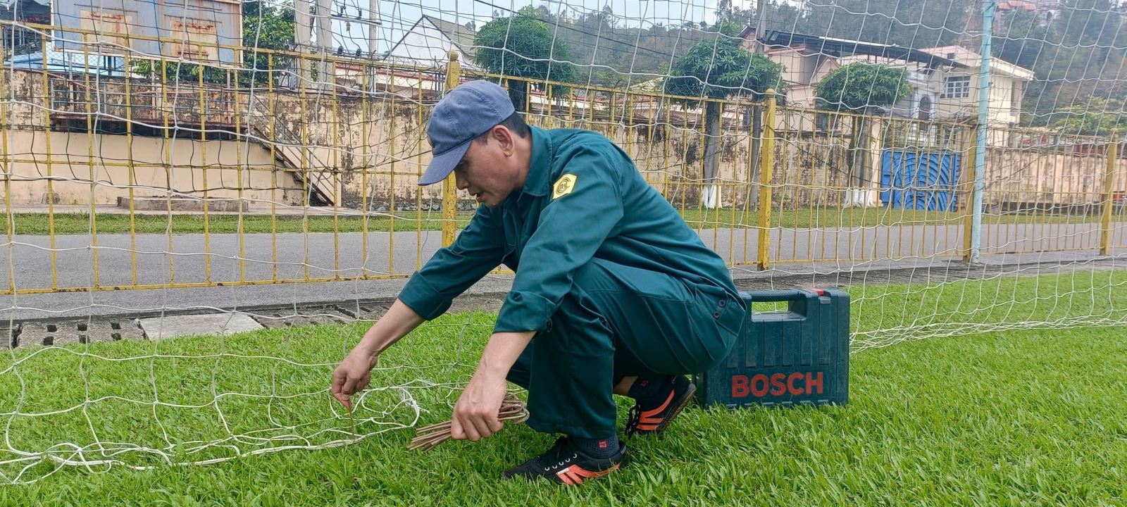 Kiểm tra mặt sân, lưới và cầu môn trước giờ thi đấu, bảo đảm điều kiện cơ sở vật chất an toàn cho các giải thể thao phong trào
