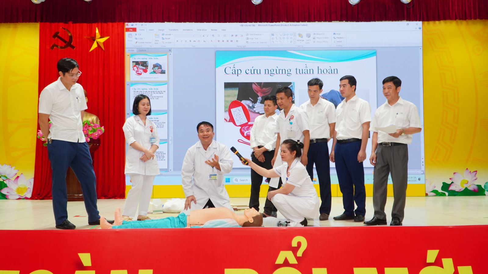 Dự buổi huấn luyện có đồng chí Đỗ Ngọc Lâm - Phó giám đốc Bệnh viện đa khoa khu vực Cẩm Phả cùng cán bộ, bác sĩ bệnh viện; đồng chí Vũ Quang Tuyến - Phó bí thư TT Đảng ủy, đồng chí Nguyễn Duy Thái - Chủ tịch Công đoàn, các đồng chí thường trực công đoàn, trưởng, phó các phòng ban chức năng Công ty cùng gần 200 An toàn viên trong mạng lưới ATVSV trong toàn công ty.
