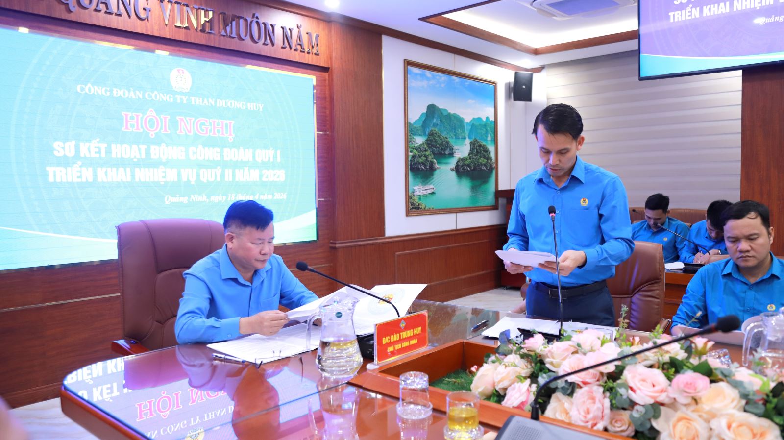 Ngày 18/4/2026, Công đoàn Công ty Than Dương Huy tổ chức Hội nghị Ban Chấp hành mở rộng nhằm sơ kết hoạt động công đoàn và phong trào công nhân lao động quý I, đồng thời triển khai nhiệm vụ quý II, phát động đợt thi đua cao điểm hưởng ứng Tháng hành động về ATVSLĐ - Tháng Công nhân năm 2026. Dưới sự chủ trì của đồng chí Đào Trung Huy - Chủ tịch Công đoàn Công ty, hội nghị đã nhìn thẳng vào kết quả, khó khăn và xác lập rõ quyết tâm hành động trong giai đoạn tiếp theo.