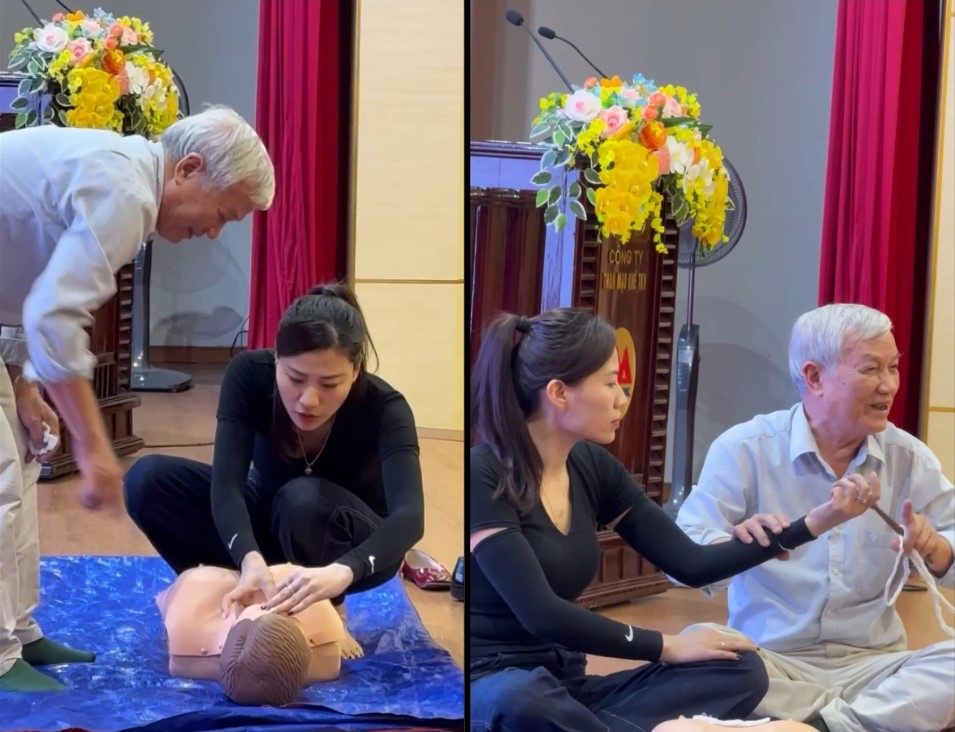 Giảng viên hướng dẫn sơ cứu một số tình huống tai nạn có thể xảy ra trong quá trình làm việc